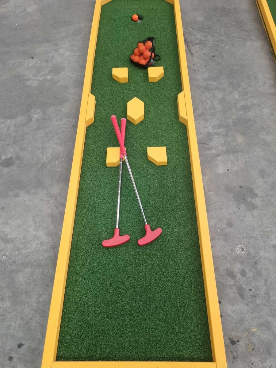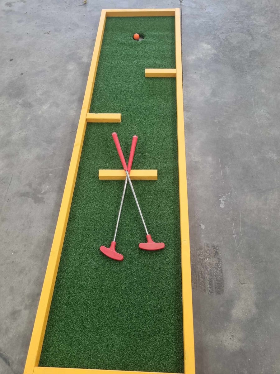 🎉🏌️‍♀️ Our Mini Putt Putt features six challenging holes, with the promise of more to come if it proves to be a hit! Each hole is thoughtfully designed to test the skills and precision of players of all ages, making it the perfect activity for indoor or outdoor fun.